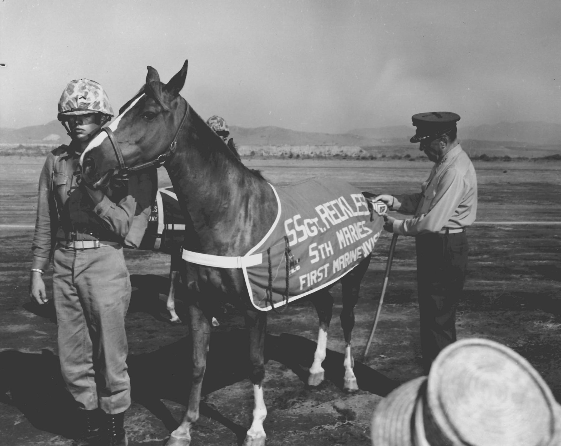 There was Reckless, a little mare who carried wounded Marines to safety again and again in Korea, even as shrapnel ripped the air around her. She was given two Purple Hearts.