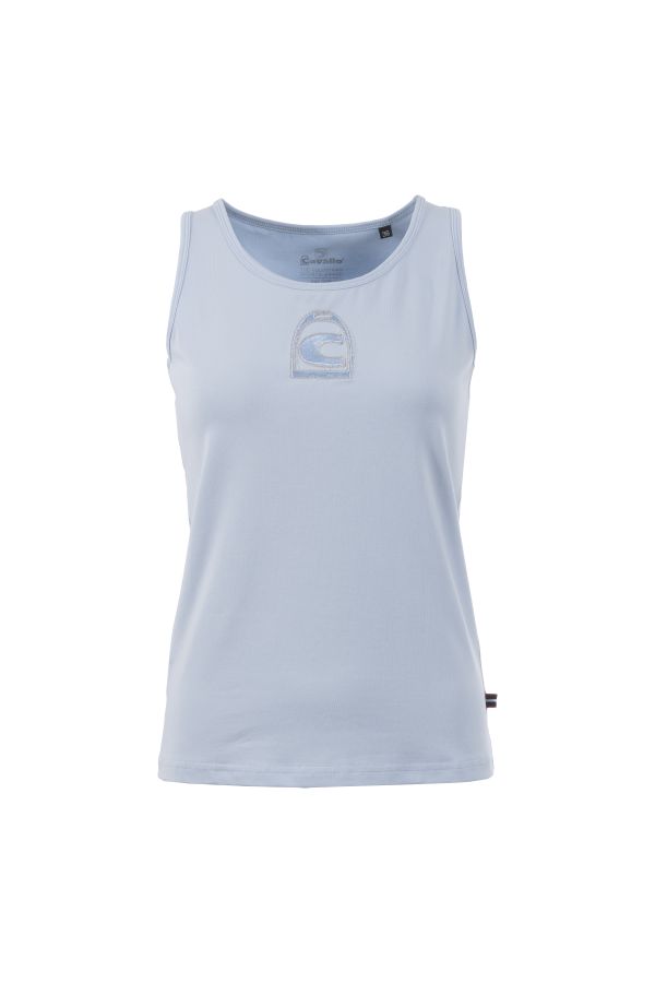 Experience ultimate comfort and style with this bi-elastic cotton jersey top. Adorned with Cavallo's iconic stirrup embroidery, highlighted by a shimmering silver outline on the chest. Complete with decorative stitching and a striking silver stirrup print on the back. Elevate your equestrian wardrobe today!