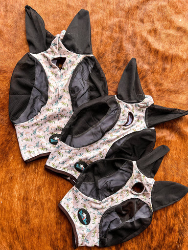 •pull on style fly mask in exclusive Hustle and Home designs •soft stretchy Lycra with binding around edges for a secure fit •mesh around eyes and...
