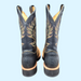 The midnight black leather upper features a gold stitching along the upper and black leather panel on the heel. The golden brown foot has a round toe and double stitch welt that allow for maximum durability and the J-Flex Flexible Comfort System® insole cushions and supports the foot guaranteeing lasting comfort. The rubber outsole resists oil & abrasions and provides a relaxed fit in and out of the saddle. This style is proudly Made in the USA with global parts.