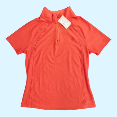 Ariat Ladies Short Sleeve Sunstopper 1/4 Zip Sun Shirt Size: Small Color: Orange Condition: Good Features: Mesh panels and full mesh back 1/4 zip ...