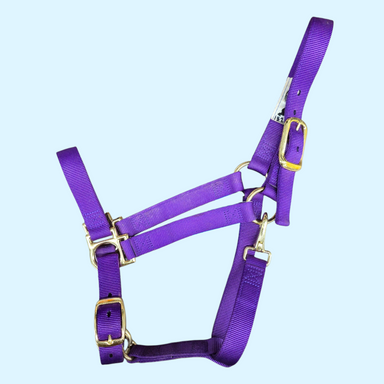 Weaver nylon halter Size: Cob Color: Purple Condition: Like new Features: Adjustable crown and nose Brass hardware Box stitch reinforcement Consi...