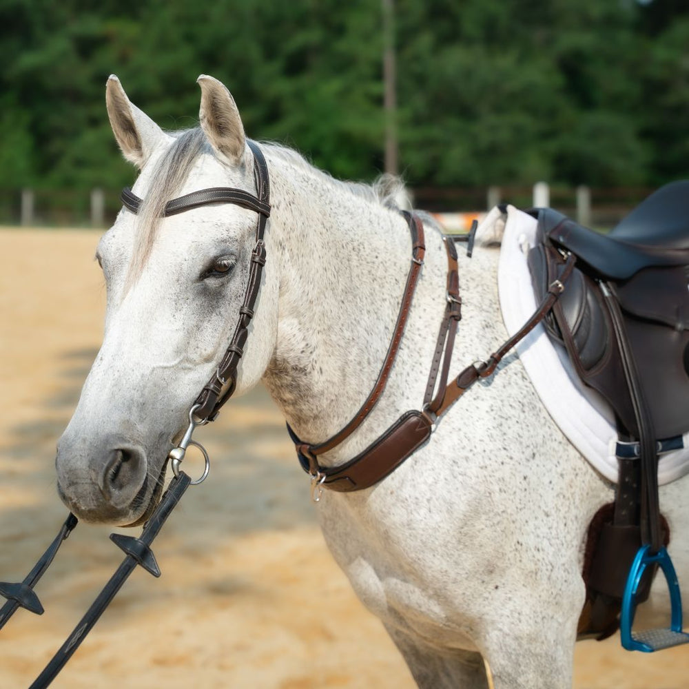 Our 3-in-1 Training Breastplate has helped many riders worldwide of all levels and backgrounds. From learning to balance while posting the trot to helping riders establish a correct and direct connection to the horse's mouth. This training aid helps riders and horses fix MANY issues with just one piece of equipment!
